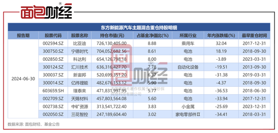 2024年以来至7月18日收盘,璞泰来、三花智控、天赐材料股价跌幅居前,分别下跌36.53%、34.41%和33.94%。相对而言,比亚迪、宁德时代股价表现较好,分别上涨32.04%、18.19%。